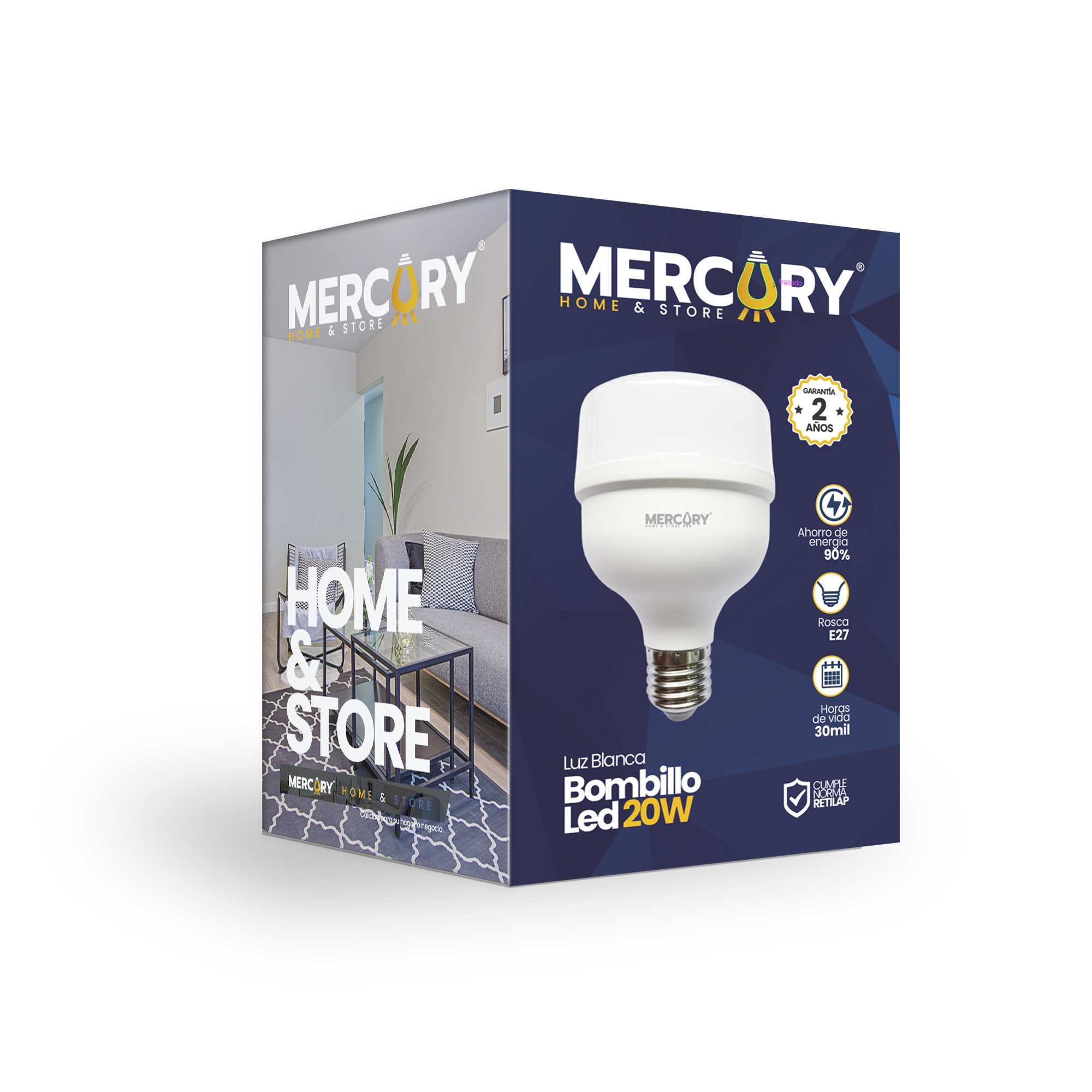 BOMBILLO LED MERCURY 20 W Voltaje: 85-265V Vatios: 20W Color luz: blanca 3000K Lumenes: 85-90 LM/W Proteccion IP: 20 Horas de vida: 25.000